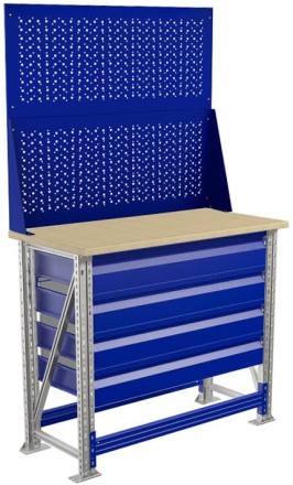 - Возможность дополнить верстак полкой (нагрузка 100 кг) и выдвижным ящиком (нагрузка 30 кг).